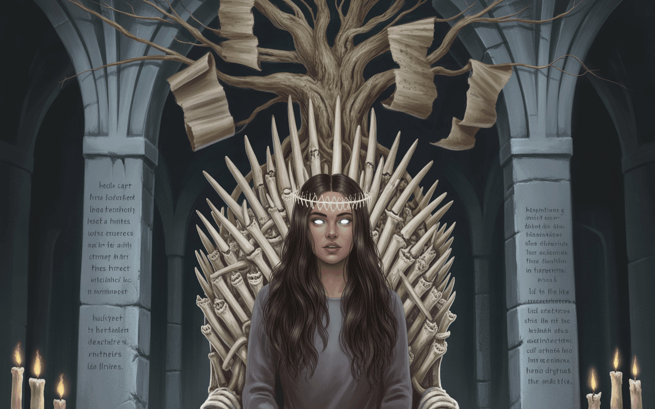 In a kingdom where royalty wears crowns made of the teeth of their enemies, a young scribe is chosen to record the darkest secrets of the crown—and discovers her own teeth whisper forbidden truths.